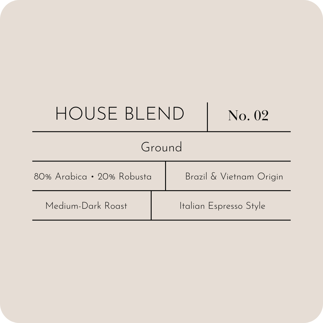 A bold, balanced blend crafted for everyday excellence. Our House Roast is a medium-to-dark blend made with 80% Arabica beans from Brazil and 20% Robusta from Vietnam, offering a smooth yet robust flavour profile. The Brazilian Arabica brings notes of toasted nuts, dark chocolate, and a gentle sweetness, while the Vietnamese Robusta adds depth, body, and a subtle kick of caffeine.